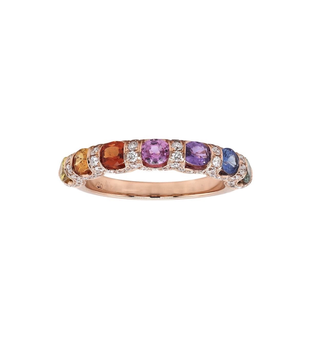 Add colour to your day with CARON’s Rainbow collection, consisting of rings, bracelets, necklaces and earrings handcrafted in 18k rose gold with matching layouts of high-quality sapphires in all colours of the rainbow. Paired and contrasted with white diamonds, every piece is a celebration of light, colour, and sophisticated style.