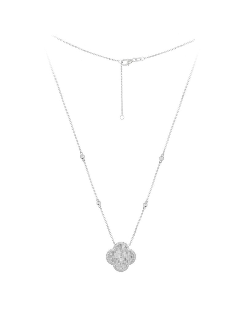 4-Clover Necklace in White Gold with Round and Baguette Shape Diamonds